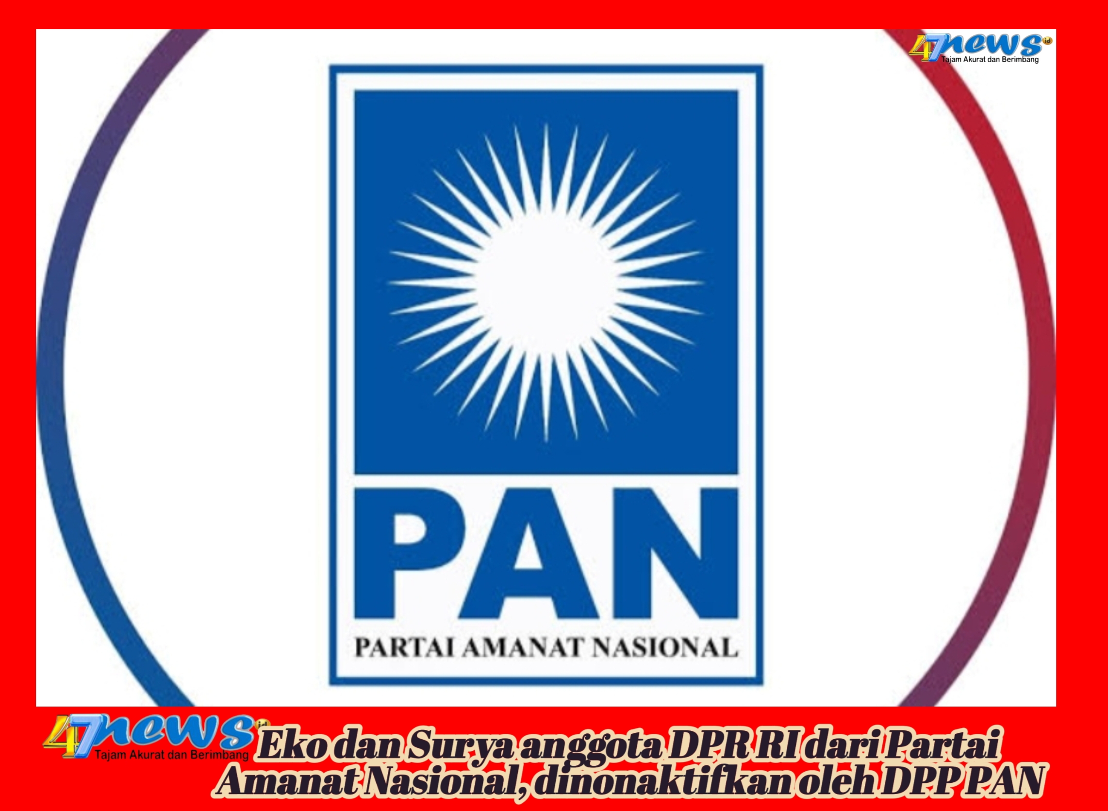 47News.id | Jakarta – Dewan Pimpinan Pusat (DPP) Partai Amanat Nasional (PAN) dalam keterangan siaran pers senantiasa berkomitmen menjaga kehormatan, disiplin, serta integritas wakil rakyat yang berasal dari PAN dalam menjalankan tugas-tugas konstitusional di DPR RI. Minggu, 31 Agustus 2025.