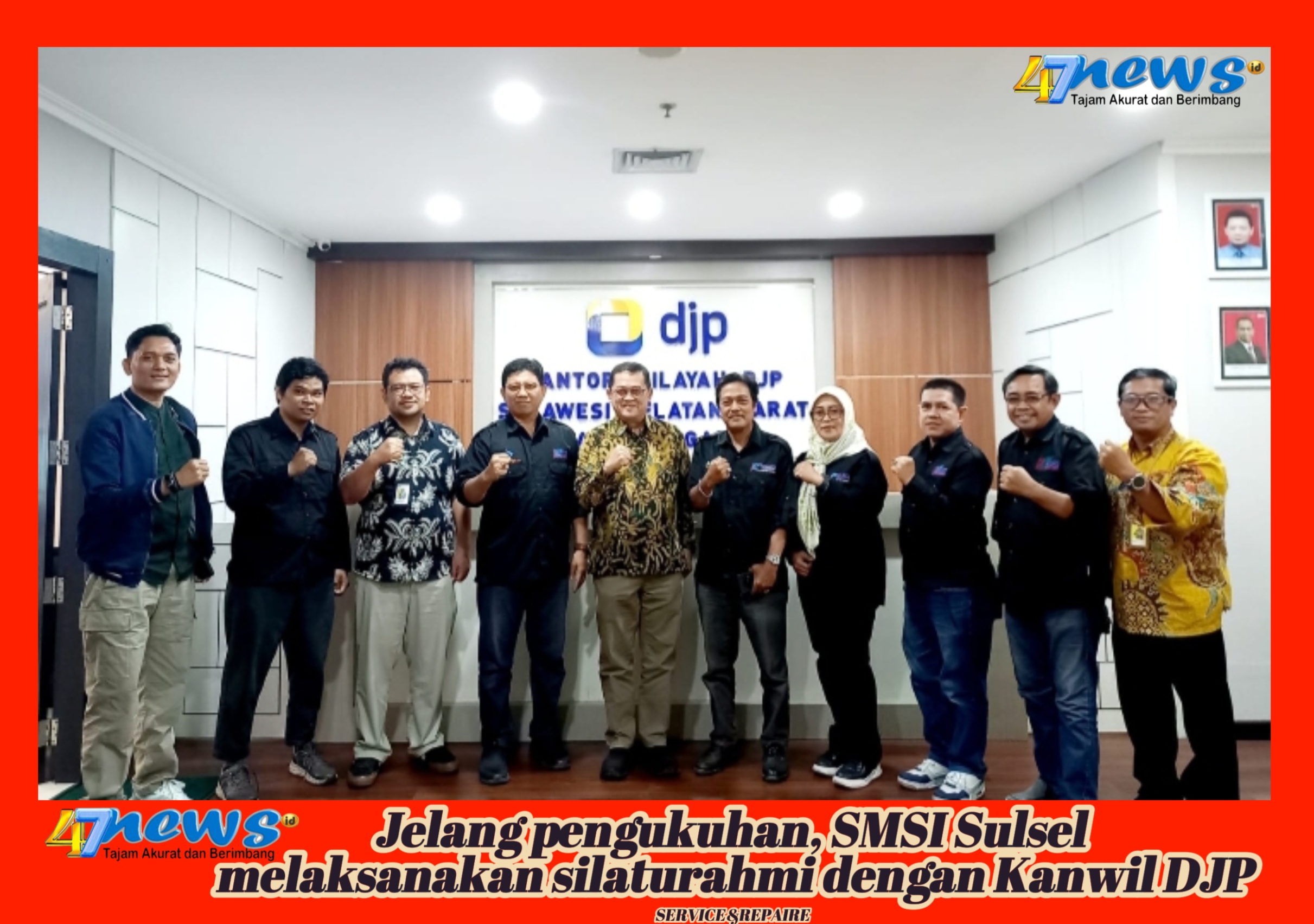 47News.id | Makassar – Konstituen Dewan Pers (DP), Serikat Media Siber Indonesia (SMSI) Provinsi Sulawesi Selatan bersilaturahmi ke Kanwil DJP Wilayah Sulawesi Selatan, Barat dan Tenggara (Sulselbartra). Jumat, 22 Agustus 2025 kemarin.