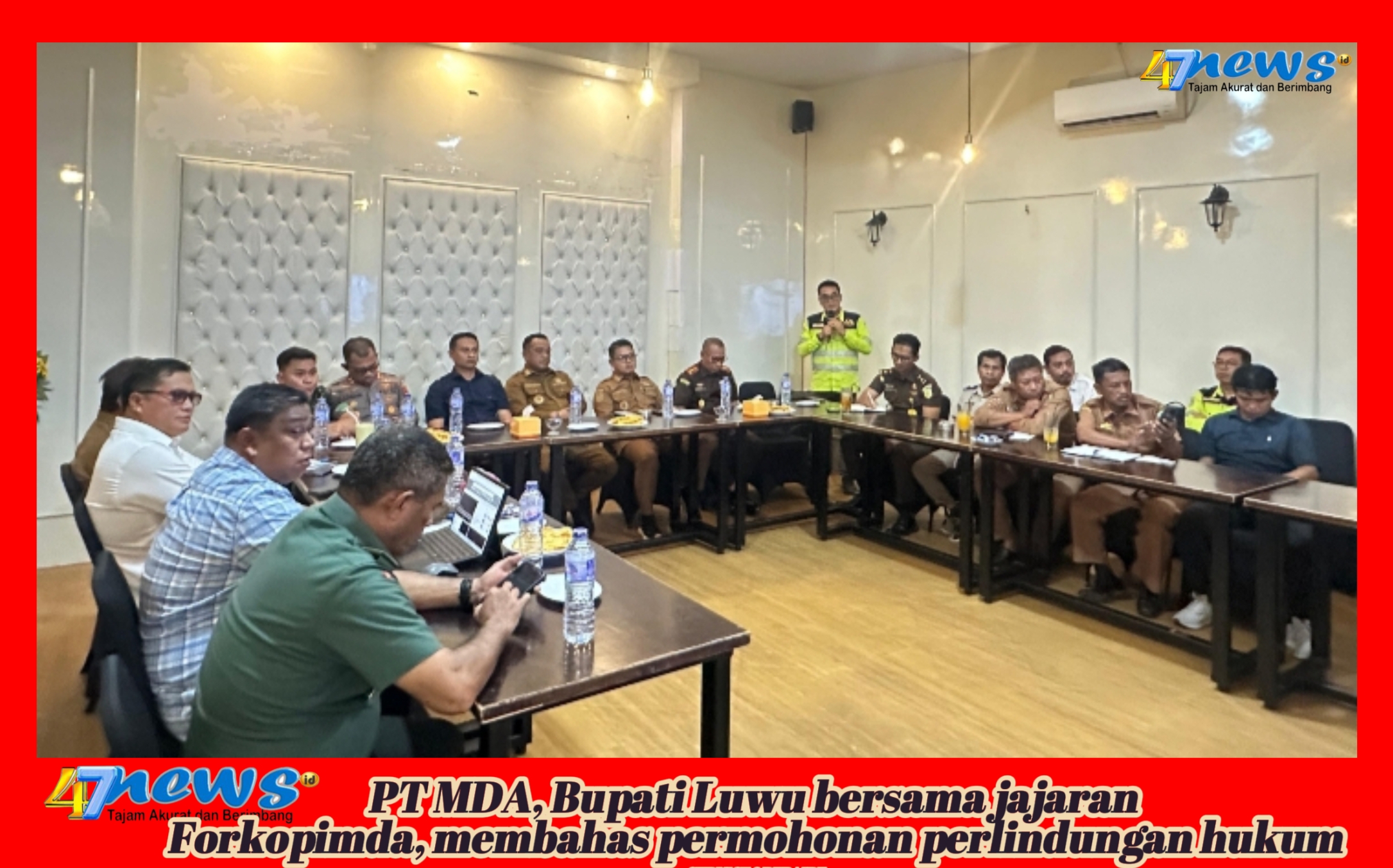 47News. Id | Belopa – PT Masmindo Dwi Area (MDA) menginisiasi audiensi dengan Bupati Luwu bersama jajaran Forkopimda, untuk membahas permohonan perlindungan hukum atas kegiatan investasi di wilayah Luwu. Rabu, 17 September 2025, di Belopa Kabupaten Luwu, Sulsel.